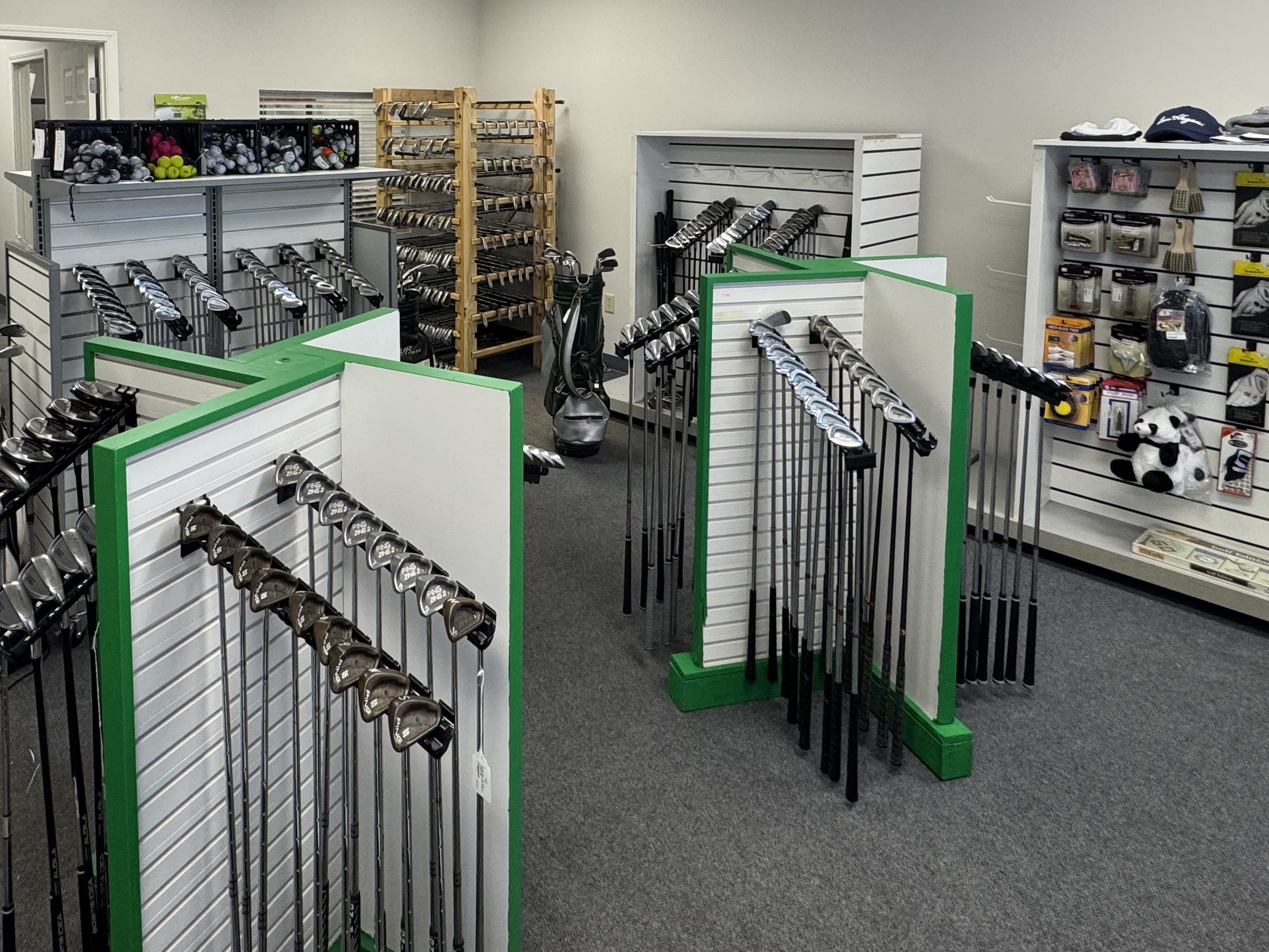 We have plenty of newer clubs too, like TaylorMade, Nike, and Tour Edge, as well as tons of new & used balls, bags, gloves and tees. Everything you need to get on the course, except shoes.